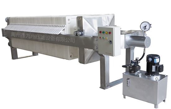 懸浮液用料泵送入濾機(jī)每個(gè)密閉的濾室,在壓力作用下,濾液透過濾層及濾布,經(jīng)濾布出液口排出,濾渣則留在濾框內(nèi),從而達(dá)到固液分離的目的。